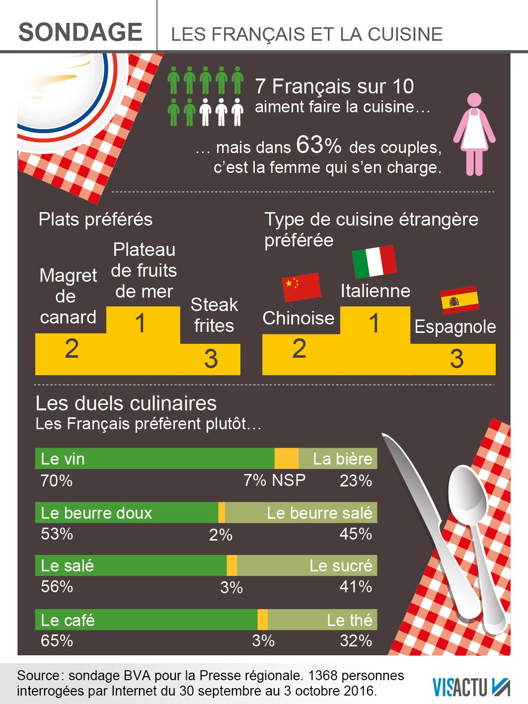 Il y a quelques jours on a fait un sondage sur les Français et la cuisine. Regardez bien les résultats :